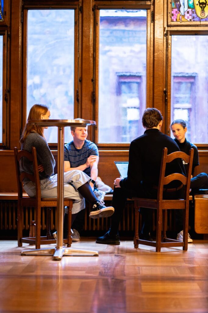 Wie gewohnt ging es um 8:30 Uhr mit einem gemeinsamen Z'Morge und Austausch los. Anschliessend wurde die Session durch das Co-Präsidium des Jungen Rats eröffnet. Am Vormittag wurden die Petitionen in den Arbeitsgruppen Bildung, Verkehr und Umwelt diskutiert und danach präsentiert. Es ging um ein neues Schulfach für konkretere und bessere politische Bildung, mehr Sicherheit für Velofahrende an Kreuzungen und eine Website für die Stärkung und den Erhalt der Biodiversität.